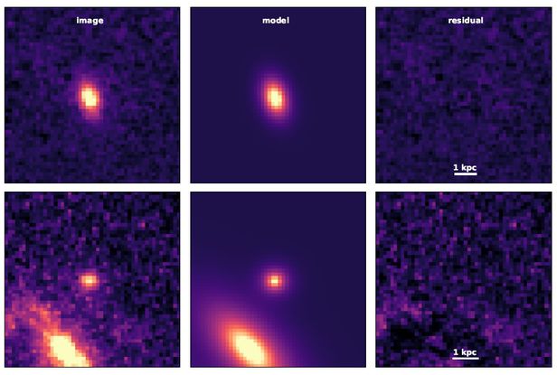 134억년 전 은하인 GLASS-z11(위)과 135억년 은하 GLASS-z13 (아래)./하버드-스미스소니언 천체물리학연구소