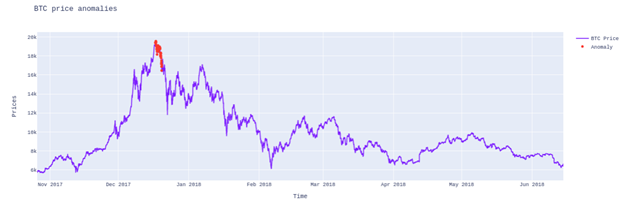 As I’ve mentioned in the previous article, we want to detect anomalies in the current and future Bitcoin prices. Let’s clarify. First of all, we need to use the past and current data to predict what’s going to be the future price value, to then determine anomalies in the entire data picture. Let me further clarify this graphically.