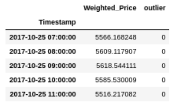 btc = btc[['Timestamp','Weighted_Price']] btc = btc.resample('H', on='Timestamp')[['Weighted_Price']].mean()