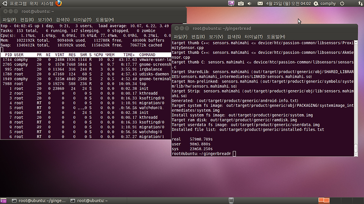 기본 카테고리 구글의 진저브레드 빌드 : gingerbread build 졸리운_곰 2011. 4. 25. 20:37 구글의 모바일 플랫폼 진저브레드의 빌드 : 프로요만 빌드하다 ubuntu를 64bit로 다시 설치하느라고 늦었군요. 메모리 1G로 잡고 Intel I3 버철머신에서 빌드하니 약 8~9시간 걸립니다. 성능 좋은 직접설치된 우분투에서는 2~3시간 걸리겠꾼요.