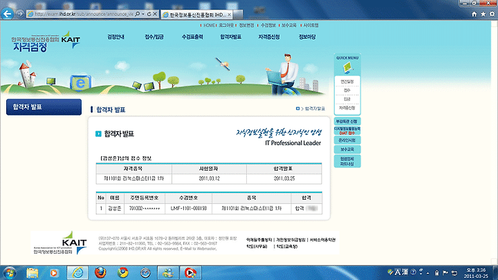 2011 리눅스 마스터 상반기 1급 필기 합격이네요.