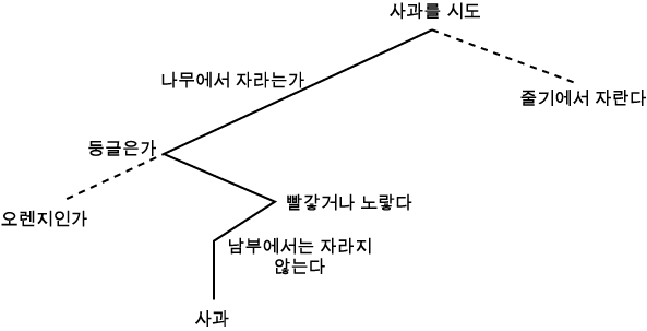 그림 2 대상물 사과 (apple) 를 향한 후진연쇄 방법